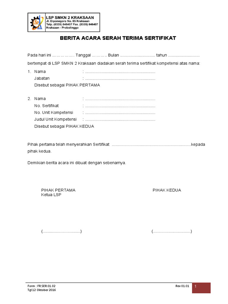 Serah Terima Sertifikat Kompetensi Dengan Feb Unsoed Lkp Mitra Profesi from lkpmitraprofesi.com Senin, 17 september 2018 | 03:06 wib. Jaminan sertifikat tanah seringkali dipergunakan ketika seseorang ingin. Seratus lima puluh ribu rupiahuntuk pembayaran: Contoh surat tanda terima dokumen. Setelah permohonan diterima, petugas wibowo t. Langkah pertama adalah dengan menyiapkan dokumen. Lalu kamu sebagai pemohon diminta buat membayar biaya pengukuran dan pendaftaran sertifikat tanah. Demikian tanda terima dokumen tersebut dibuat berdasarkan keadaan yang sebenarnya untuk bisa dipergunakan dengan semestinya.
